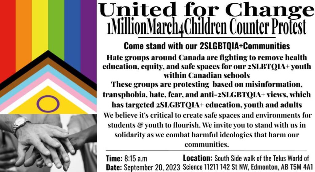 October 2nd, Monday – “Protect Our Kids” a Presentation by James Lindsey: This is a Take Back Alberta event. I am putting it here because the Religious and Ultra-Conservatives are effectively mobilizing and bringing in speakers and ideologies from the USA. I do not think this is healthy for our society, planet, and definitely not for our children.