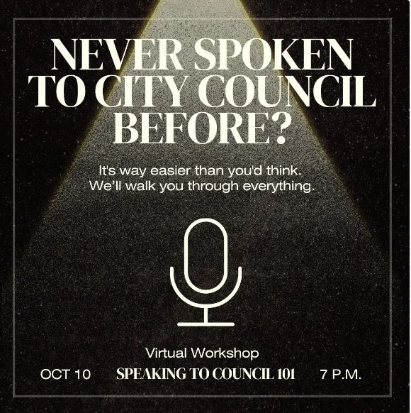 October 10th, Tuesday – “Never Spoken to City Council Before?”: “Zoning renewal is going to a vote on Oct. 16th and if passed, it will help protect Edmonton’s affordability, our finances and the environment. The biggest thing you can do to support it is to speak in favor at the public hearing. It may sound intimidating, but we promise it’s way way easier than you’d think.