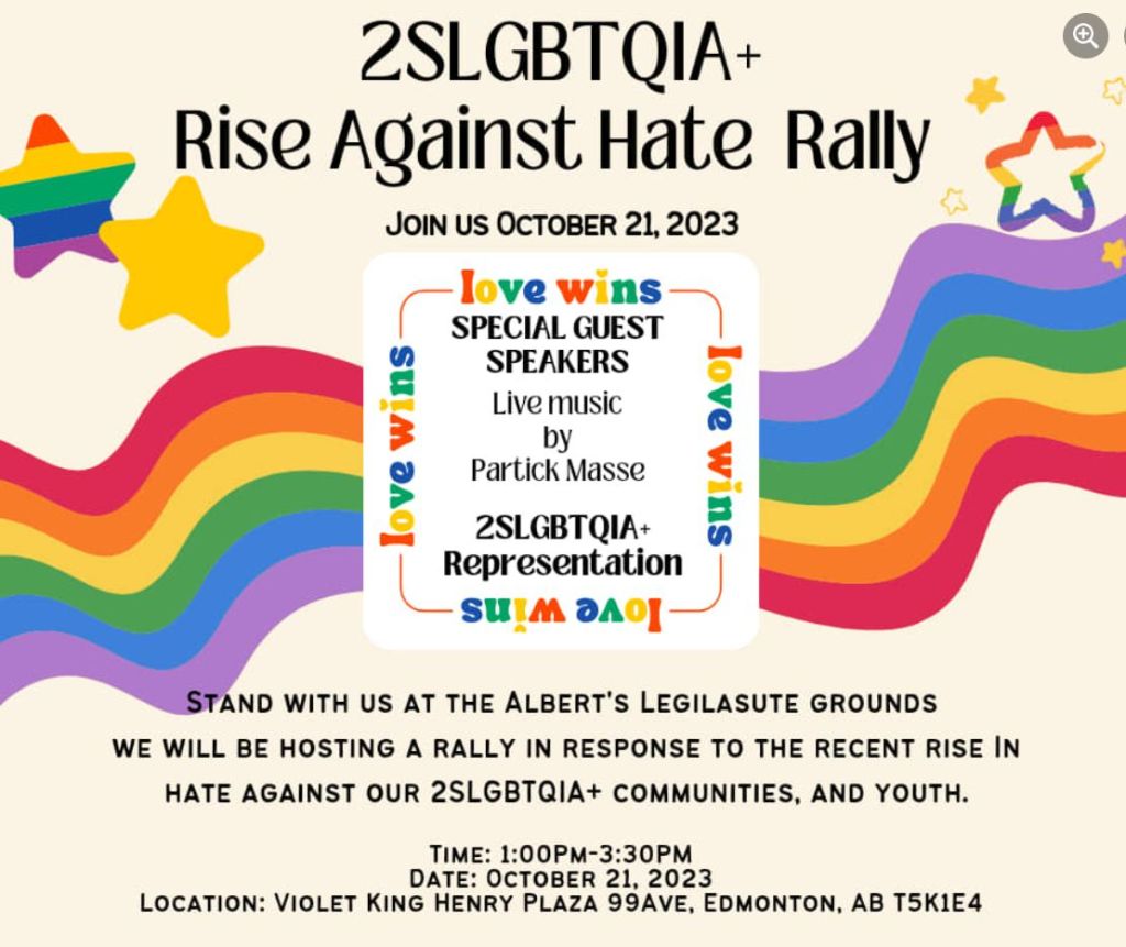 Volunteers are needed for the 2SLGBTQIA+ rally happening on October 21st (See above for rally details for October 21). They are looking for Security and Peacekeepers and chanting leads.