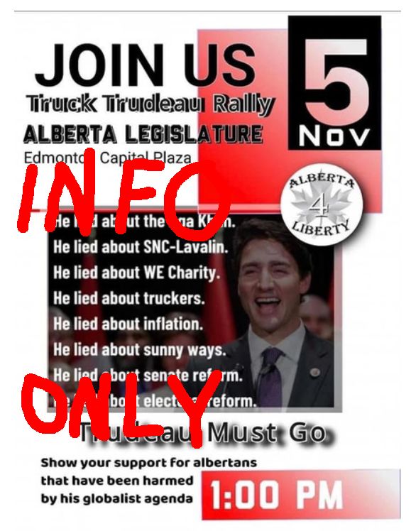 November 5th, Sunday – Truck Trudeau Rally: for information purposes only.