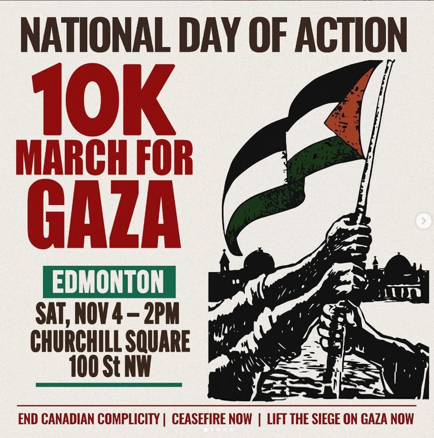 November 5th, Sunday – Gather for Peace: A silent gathering of Edmontonians to call for peace and end armed conflict. Peace starts with a ceasefire.