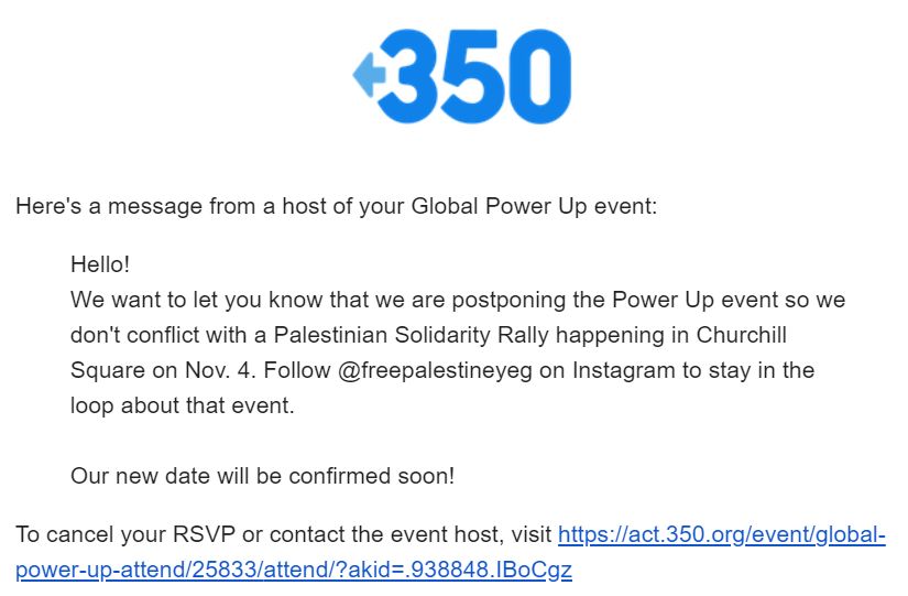 This has been postponed so that it does not conflict with the Palestinian event at 2 pm November 4th, Saturday – Power Up for Climate Solutions: “We’re calling on governments to use all financial means possible to reclaim the excessive profits of the fossil fuels industry. Whether through taxes, by ending subsidies and by stopping all investments in old and new fossil fuel projects, they must use this money to power up the global renewable energy revolution, that is fair and distributes resources equitably around the world. Let’s power up the future we want! Join us.”