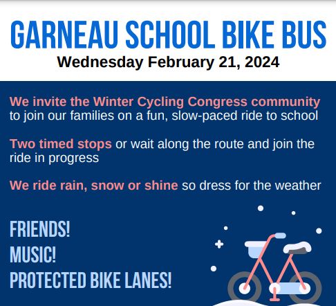 February 21st, Wednesday – Garneau School Bike Bus: Want to see how a School Bike Bus works?