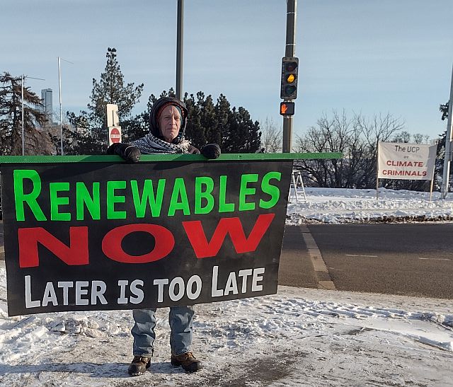 Why do I have UCP on this sign? Well, they form the present government in Alberta and like all previous Alberta governments (including the NDP) have pushed the fossil fuel agenda to the detriment of the planet while knowing what impacts their actions would have on people and planet.