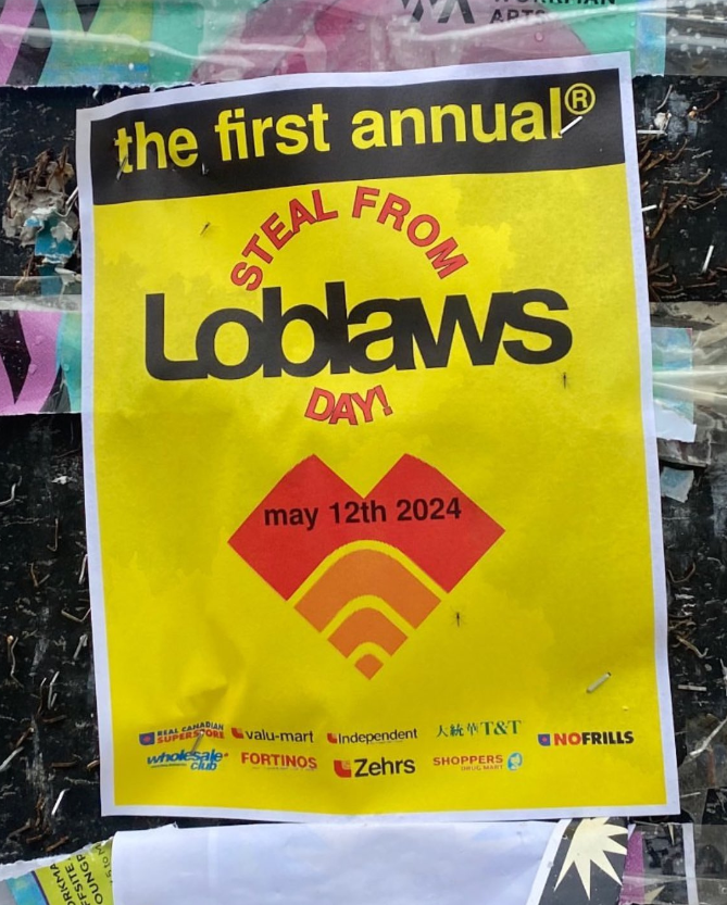 May 12th, Monday – The First Annual “Steal from Loblaws” Day: Disclaimer: we are not advocating that people steal from this or any other business.