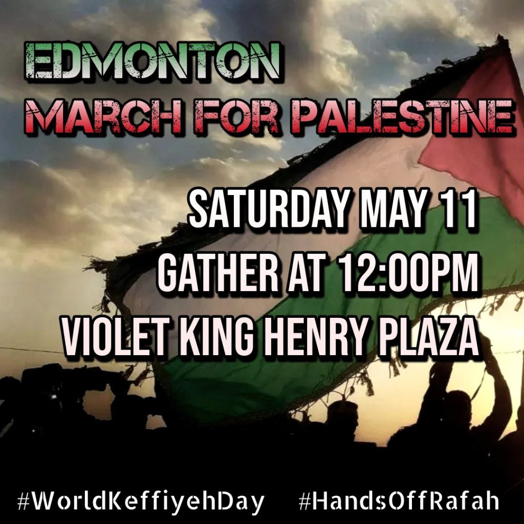 May 4th, Saturday – March for Palestine: #YEG #ArmsEmbargoNow #Edmonton4Palestine #HandsOffRafah