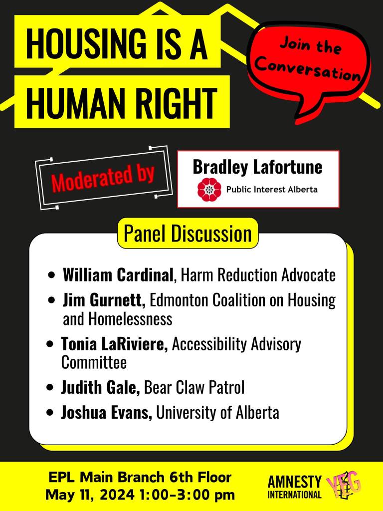 May 11th, Saturday – Housing is a Human Right: Panel discussion and conversation.