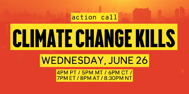 June 26th, Wednesday – Climate change kills. How do we fight back?: “As we approach the third anniversary of the deadly 2021 Heat Dome, join the 350 Canada team for an important online action call.