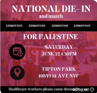 June 22nd, Saturday – National Die-In and March: “Send a clear message there will be no business as usual. We will not stay silent while genocide is unfolding.