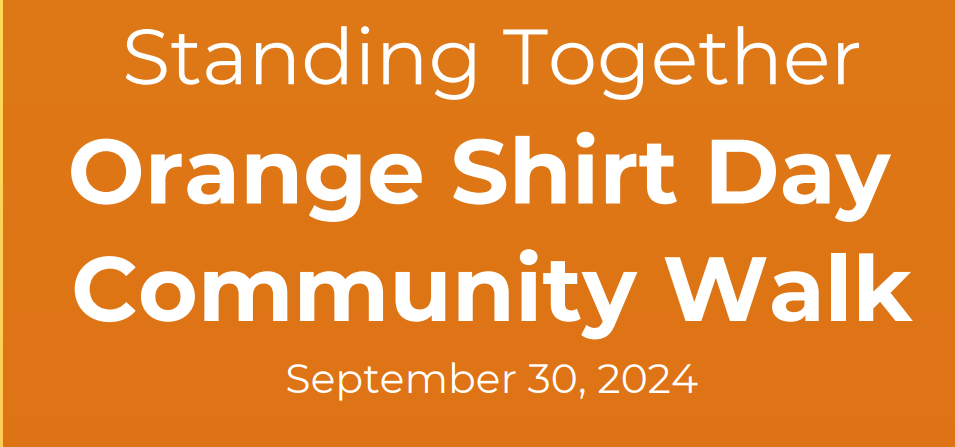 September 30th, Monday – Orange Shirt Day Community Walk: “All are welcome to join us in holding space through prayer and song in tribute to our loved ones and survivors.