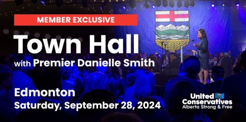 September 28th, Saturday – UCP Town Hall with Premier Danielle Smith: The UCP and Danielle Smith are having another members-only “town hall” and this time in Edmonton.