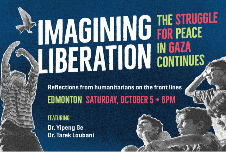 October 5th, Saturday – Imagining Liberation: The Struggle for Peace in Gaza Continues: “Join us on October 5 at the Imagining Liberation stop in Edmonton, where vital Palestinian voices and allies will share their perspectives. Gain a firsthand understanding of what it means to continue advocating for Gaza’s freedom in the face of ongoing atrocities.”