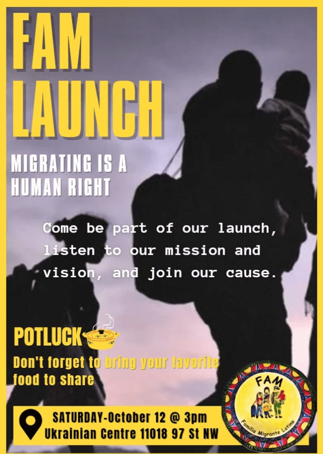 October 12th, Saturday – FAM Launch: Migration is a human right. Come and be a part of our launch, listen to our mission and vision, and join our cause.