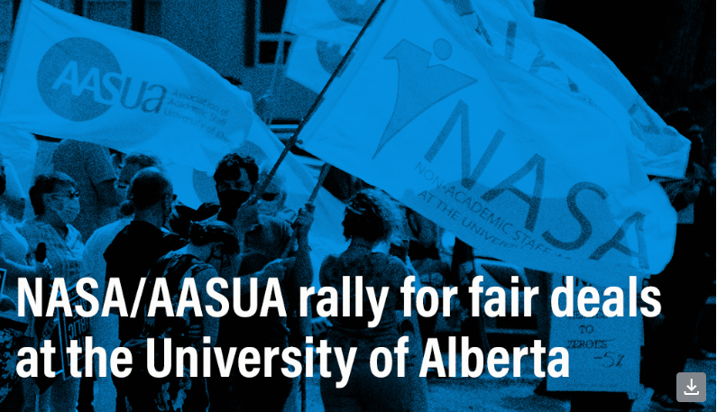 Let’s show the UofA employer and the provincial government that we won’t back down in the fight for fair working conditions, fair pay, and our collective bargaining rights!