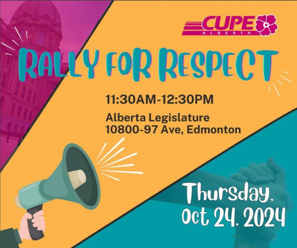 October 24th, Thursday – Rally for Respect: CUPE is hosting a rally and I think the AUPE is showing up as well. This should be a big one.