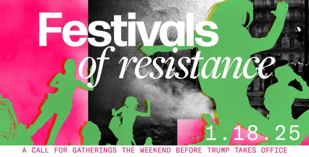 January 18th, Saturday – Festivals of Resistance: trump is being inaugurated on January 20th. People are being invited across the USA and elsewhere to host Festivals of Resitance events.