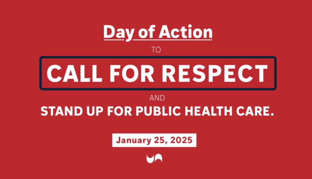 Janurary 25th, Saturday – Call for Respect Stand Up for Public Health Care: “United Nurses of Alberta (UNA) is encouraging UNA Locals across the province to participate in a Day of Action on Saturday, January 25, 2025.