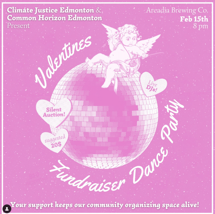 February 15th, Saturday – Valentines Fundraiser Dance Party: Fundraising event for Climate Justice Edmonton and Common Horizon Edmonton to support their community organizing space.