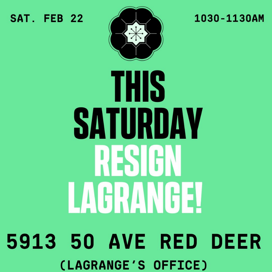 February 22nd, Saturday – Resign Lagrange: This is the third Saturday in a row that a group of people will be rallying outside Lagrange’s office. If you are in the area, please show up.