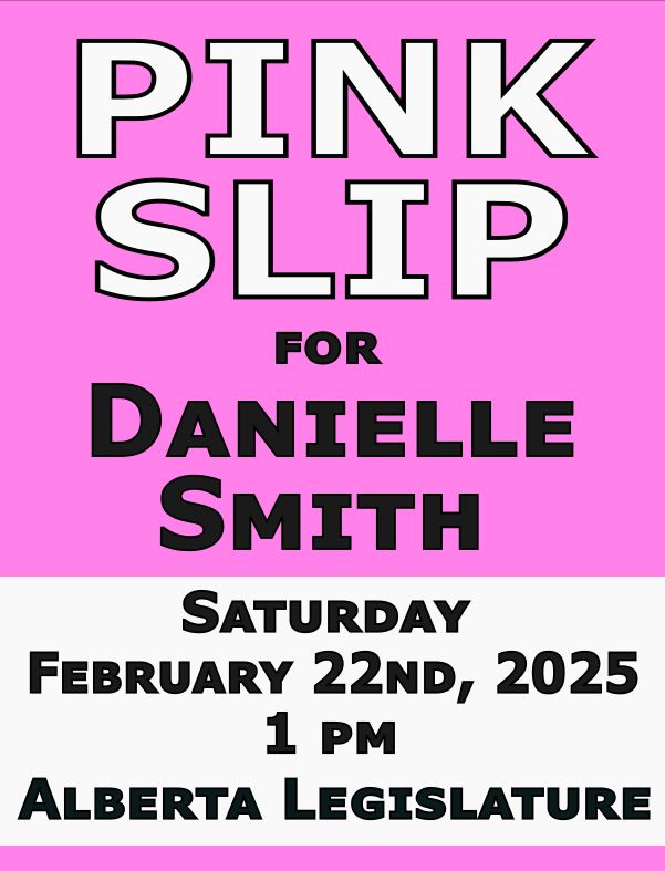 February 22nd, Saturday – Pink Slip for Danielle Smith: The UCP government, well, what can you say. They are not serving the best interest of the majority of Albertans, our country, or the planet. Danielle Smith is either directly complicit in the stench of corruption or woefully ignorant and completely inept.