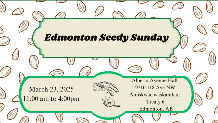 March 23rd, Sunday – Edmonton Seedy Sunday: “Get ready for gardening! We’ll have a seed sale and swap, presentations and family-friendly activities.