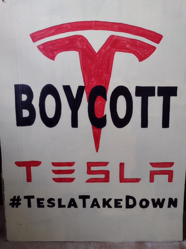 This is a peaceful non-violent action to bring awareness of the plutocracy/oligarchy actions of one of Tesla’s owners – Elon Musk.