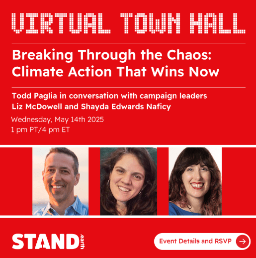 Join Stand.earth Executive Director Todd Paglia, and Senior Campaigns Directors Liz McDowell and Shayda Edwards Naficy to hear why litigation, corporate campaigns, and local policy are the next big plays to fight climate change. We’ll share case studies of recent wins from each strategy – including stories, stats, and photos – and give you a sneak peek at what’s next in the Stand playbook.”