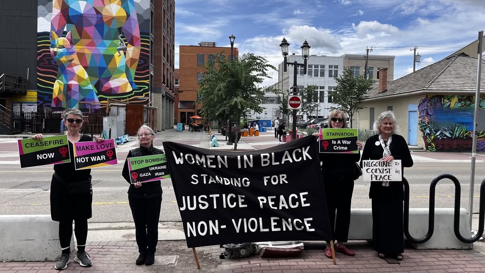 July 19th, Saturday – Women in Black Vigil for Non-Violence: Women in Black formed in 1988 and since then has expanded to 100,000 women worldwide. Women in Black Edmonton formed in 2003. Our silent vigils remind us of the power of nonviolence in a world where violence can destroy lives in our homes, streets, and regions. Please join us.