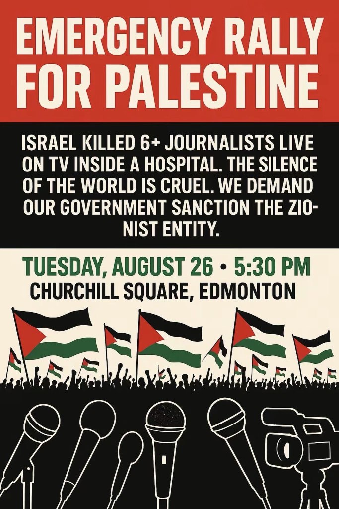 August 26th, Tuesday – Emergency Rally for Palestine: