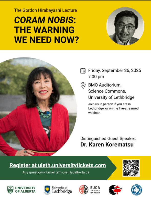 This event is organized by the University of Lethbridge and University of Alberta, in collaboration with the Nikkei Cultural Society of Lethbridge and Area, the Edmonton Japanese Community Association and the National Association of Japanese Canadians.
