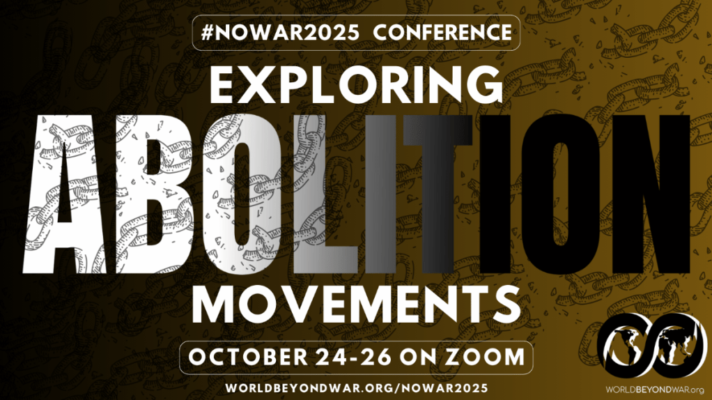 October 24th – 26th – Exploring Abolition Movements: “How do we move towards a world without wars, weapons, police, prisons, the death penalty, and borders? How can we work towards our collective liberation, recognizing that oppressions are interconnected? Come to #NoWar2025 to explore how we can join in solidarity across movements and borders to abolish these interwoven systems and build a world based on common security — “no one is safe until all are safe.