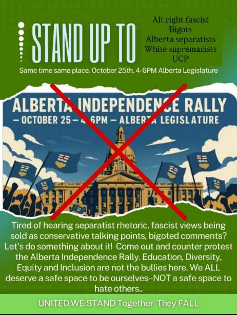 October 25th, Saturday – Stand Up To Fascists/Seperatists: THIS IS A COUNTER PROTEST to the “Alberta Indepence Rally”.