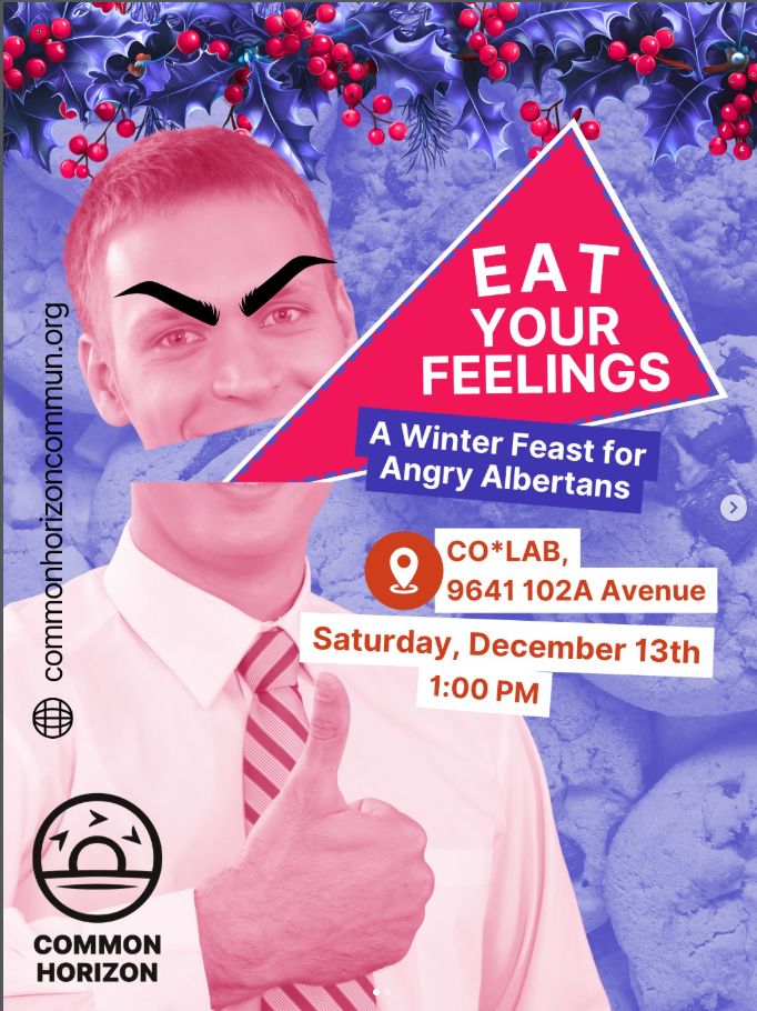 December 13th – Eat Your Feelings: “Feeling overwhelmed by the state of workers’ rights in Alberta? Come and Eat Your Feelings with us!
