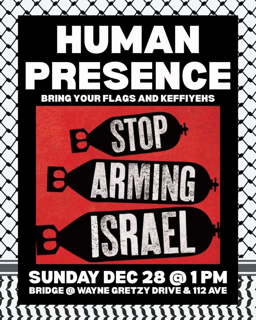December 28th, Sunday – Huaman Presence: Stop Arming Israel:
