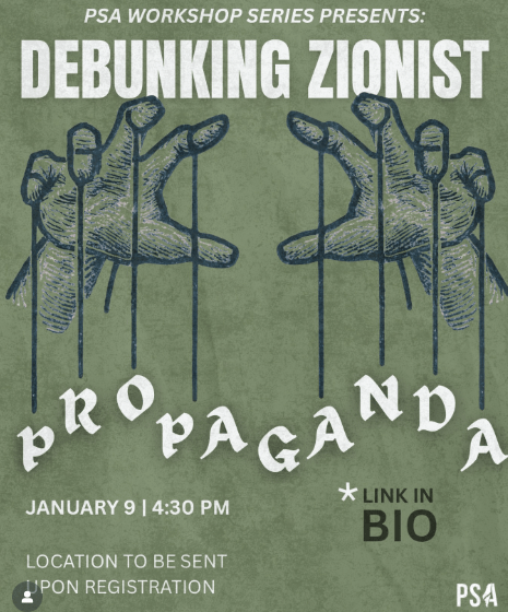 - January 9th, Friday – Debunking Zionist Propaganda Workshop
