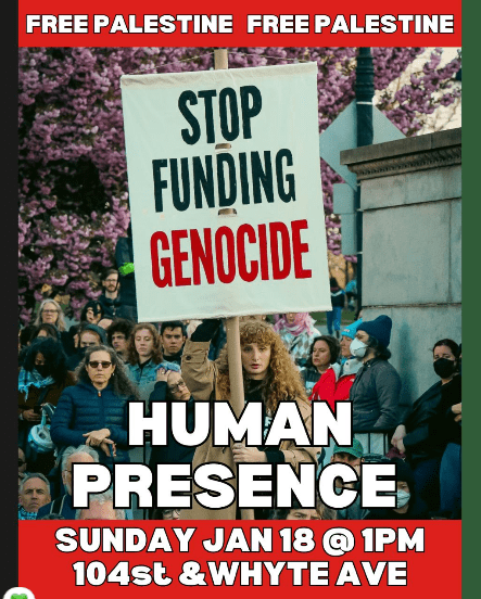 January 18th, Sunday – Stop Funding Genocide: Human Presence
