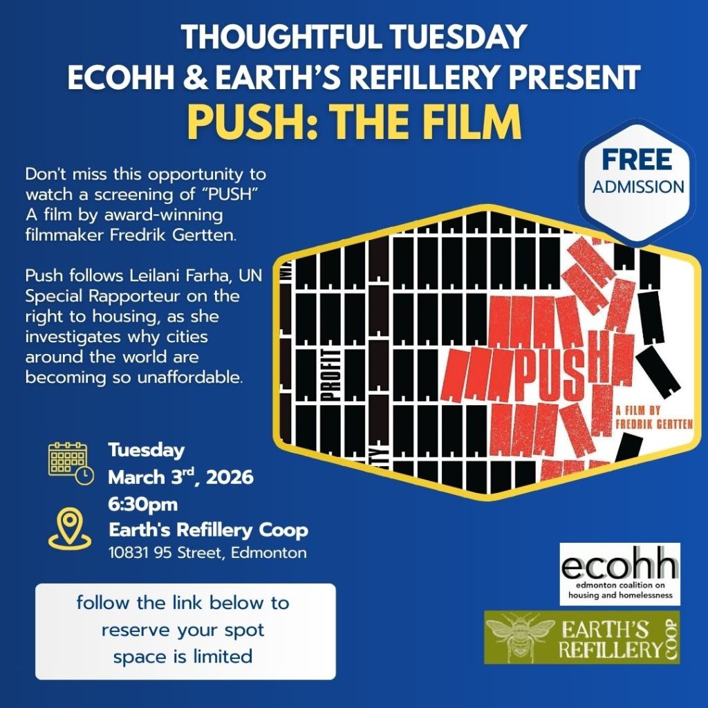 The Push: The Film is being hosted in collaboration with ECOHH (Edmonton Coalition on Housing and Homelessness).