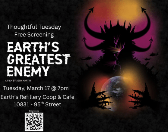 - March 17th, Tuesday – Thoughtful Tuesday Documentary Screening – Earth’s Greatest Enemy