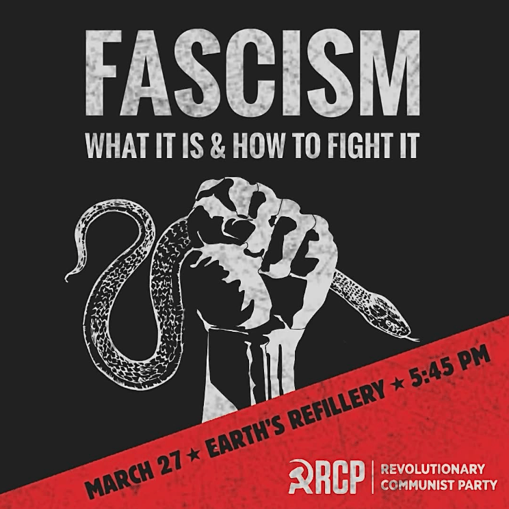 March 27th, Friday – Fascism: What Is It & How to Fight It: “We’ll be hosting an event, “Fascism: What It Is and How to Fight It?”, at 5:45PM on Friday, March 27th at the Earth’s Refillery Coop on 95st.