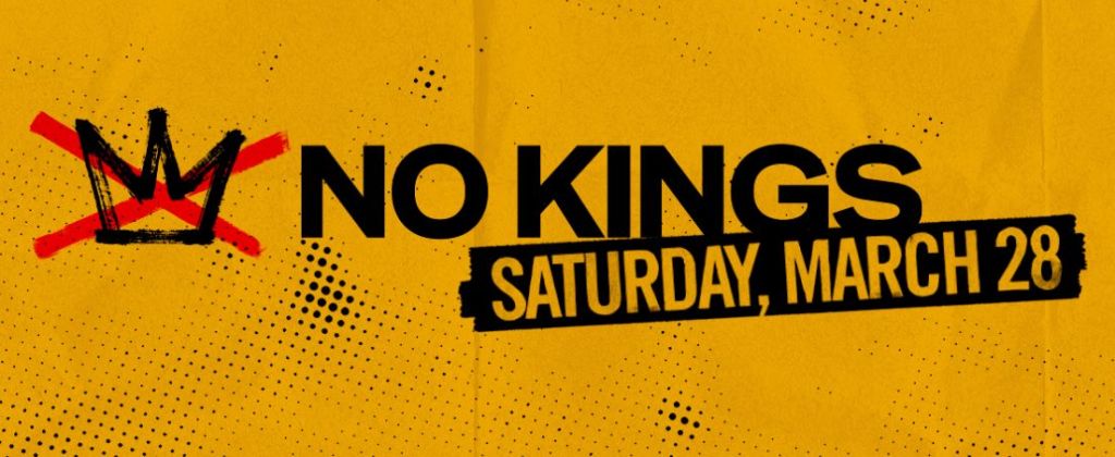 “No Thrones. No Crowns. No Kings. In 2025, millions of Americans came together in nonviolent protest to oppose the growing authoritarian actions of the Trump administration. And on March 28th, we are coming together again bigger and louder than ever before.