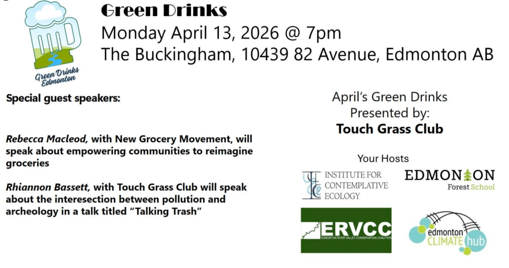 April 25th, Saturday – Parkallen Sustainability Fair: “The Parkallen Sustainability Fair on Saturday, April 25 10-1 p.m. is hosting sustainable vendors and DIY workshops to make your own cleaning and self-care products. Visit the @blenderzgarmentrecyclers booth, Waste Free YEG, Home Composting Program (City of Edmonton), New Grocery Movement and more.”