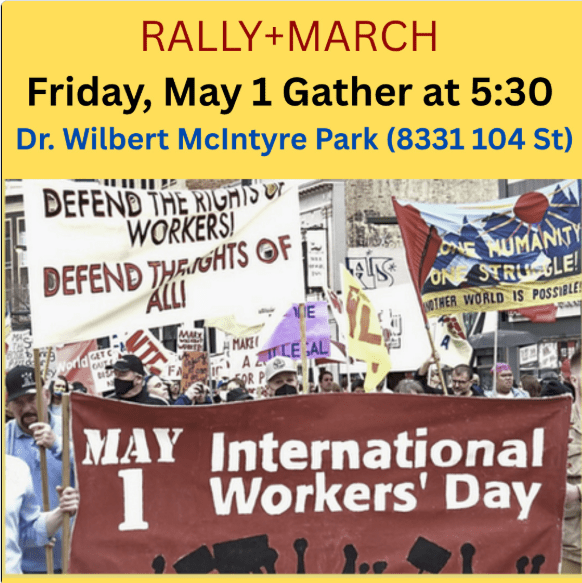 May 1st, Friday – International Workers’ Day: “The Non-Academic Staff Association at the University of Alberta will be hosting our annual International Workers’ Day March and Rally.